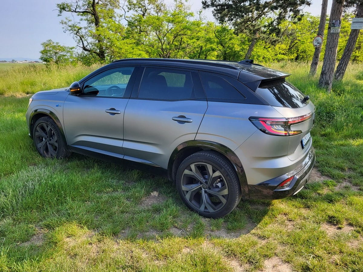 Na prvý pohľad je zrejmé, že ide o úplne nový model, ktorý sa nepodobá na žiadny z doterajších Renaultov. Vpredu má výraznú veľkú masku chladiča s novým logom. Logo to však nie je hocijaké a za ním je schovaný radar a všetky predné senzory, ktoré auto môže potrebovať. Predné svetlá, ešte stále potiahnuté do nárazníka, disponujú maticovým LED systémom, ktorý dokáže autá okolo pekne vykrajovať tak, aby ste ich neoslepovali, aj ak idú priamo oproti vám. Zboku ide o klasické hatchbackové poňatie dvojpriestorovej karosérie. Má skutočne veľké až 20 palcové kolesá, ktoré pôsobia naozaj vynikajúco. V zadnej časti sú znova LED-kové svetla, ktoré vytvárajú akýsi štruktúrovaný pás skoro cez celú časť kufra. Auto sme mali vo vyššej výbave Esprit Alpine s dvojfarebnou kombináciou, ktorá takisto pôsobila príjemne. Práve táto výbava sa líši od nižších v detailoch. Má iné disky, rozdielnu lištu v spodnej časti, prepracovaný predný nárazník vďaka čomu auto pôsobí dominantne. Ako celok môžeme pokojne pripustiť, že športový nádych mu nechýba práve vďaka takýmto detailom.
